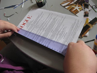 Κόβουμε σελίδες περιοδικών και τις διπλώνουμε συνεχώς (πάχος περίπου 1 εκ.) βάζοντας ανάμεσα απλή κόλλα για χαρτί.